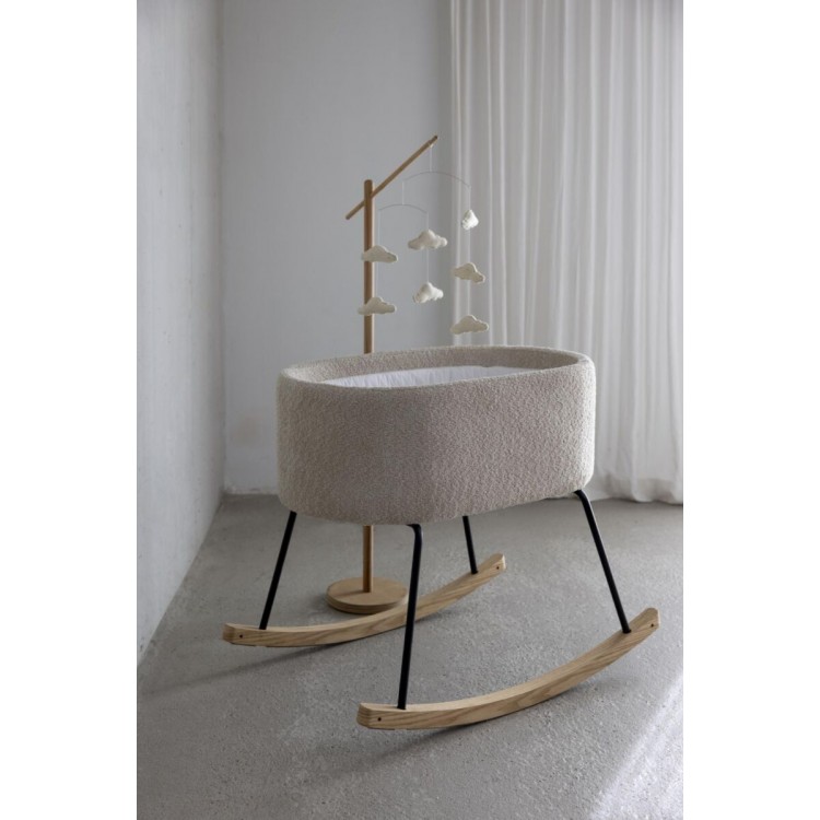 Os trilhos de madeira são equipados com feltro para evitar arranhões e garantir um balanço suave e relaxante. Também a capa interna removível facilita a limpeza, mantendo o berço sempre limpo e fresco. Este Berço não contribui apenas para um ambiente de sono seguro e tranquilo para o seu bebé, mas é também um símbolo de elegância intemporal, fruto de todo um trabalho artesanal de qualidade da Quax.